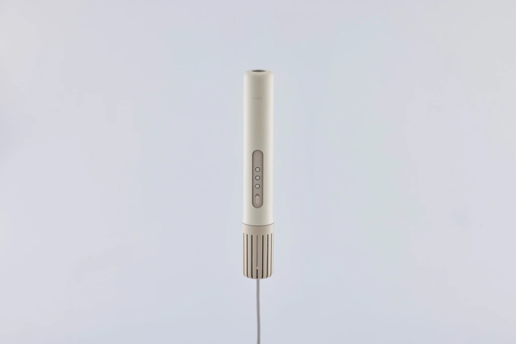 カドー布団乾燥機は、スタイリッシュな空気清浄機などで知られる家電ブランド「cado(カドー)」が出している布団乾燥機で、従来のゴツいボックス型ではなく、細長いスティック型の本体を布団に差し込んで使うのが一番の特徴です。いわゆる「ホース式」や「マット式」と違い、本体そのものを布団に挿すだけでOKというシンプルさがウリになっています。