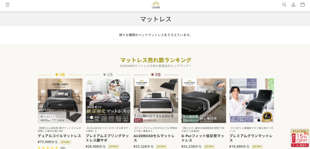 ここでは、GOKUMINの中でもとくに人気が高く、30〜40代の主婦層から支持されている代表的なマットレス商品をいくつかピックアップして紹介します。どれも「極上の眠りの後に訪れる健やかで輝かしい目覚め」をコンセプトにした設計で、忙しい毎日を過ごすあなたの体をやさしく支えてくれる心強い味方ですよ。