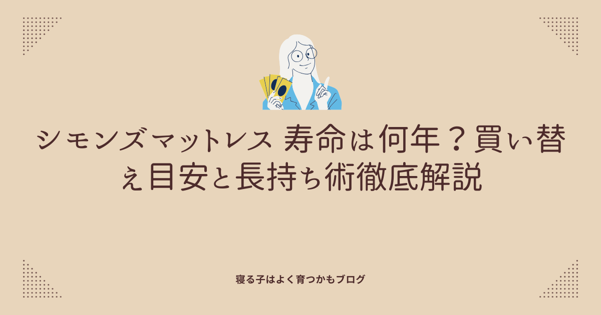 この記事では、シモンズマットレスの寿命の目安や買い替えタイミング、寿命を延ばすメンテナンスのコツまで、シモンズを長く使いたいあなたに向けて分かりやすくまとめていきます。読み終わるころには、自分のマットレスの状態を自信を持って判断できて、これから何年くらい使えそうかがイメージできるはずです。