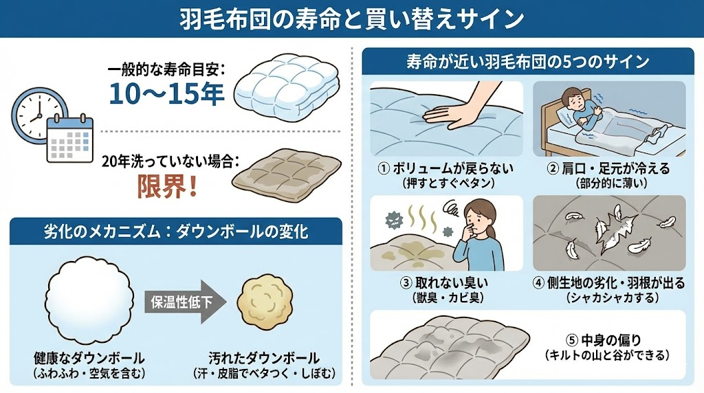 - 20年使った羽毛布団の衛生リスクと寿命の目安