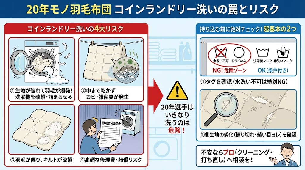 20年もの羽毛布団をコインランドリーで洗うリスク